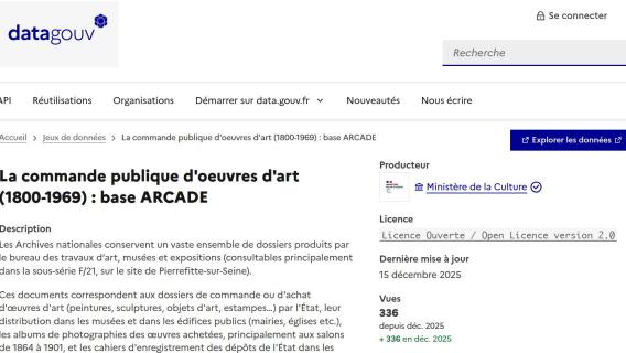 Depuis plus de 50 ans, la base Arcade, conçue par les Archives nationales, permet d’interroger finement la genèse et l'histoire des œuvres d'art acquises, commandées ou gérées par l'État et les…