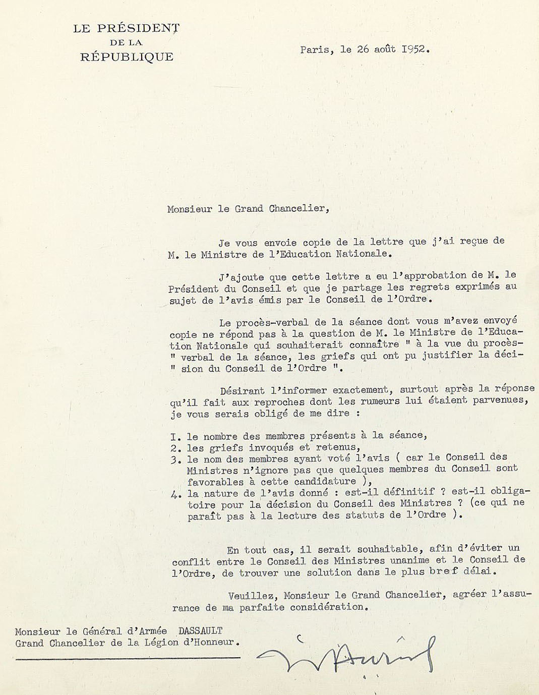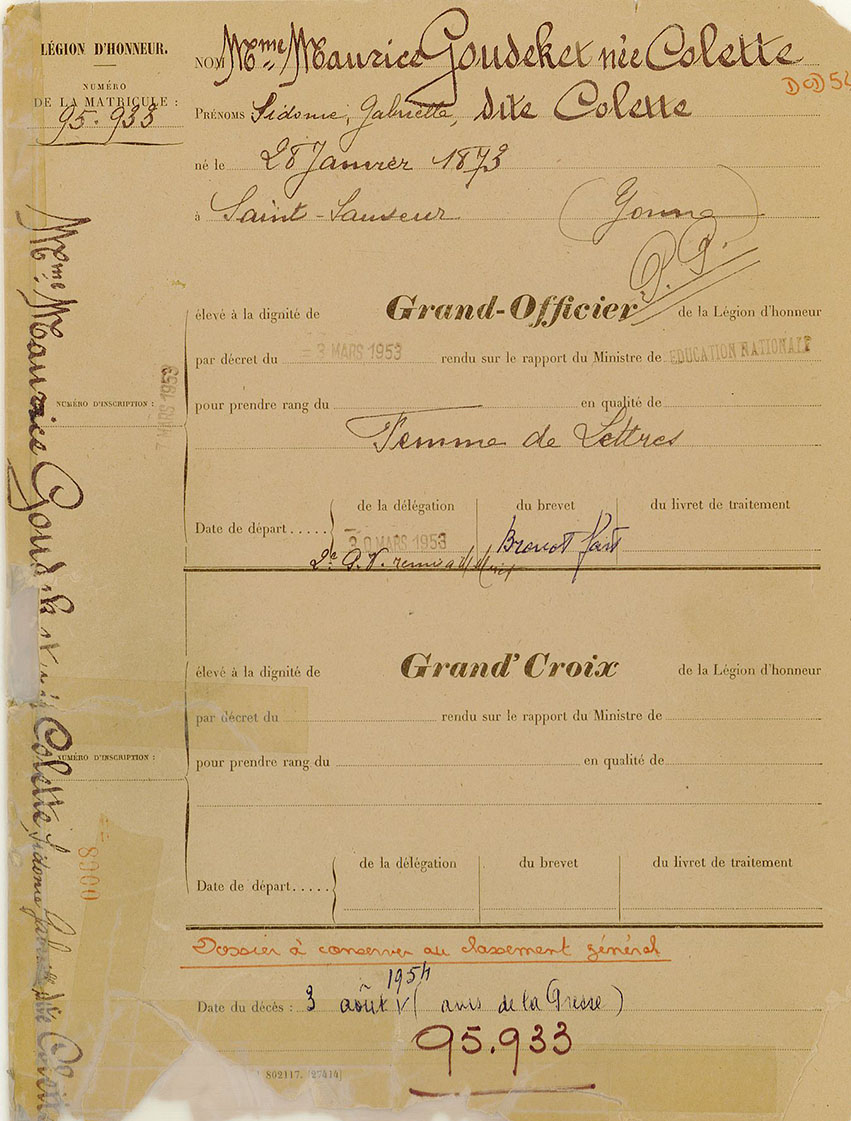 L’élévation progressive de Colette dans l’ordre de la Légion d’honneur — chevalier, officier, commandeur, puis grand officier — donne lieu à des débats vifs, conservés dans les dossiers de la Grande Chancellerie. Rapports, notes internes, échanges entre ministres et président de la République révèlent les résistances opposées à une femme jugée trop libre pour incarner un modèle national.