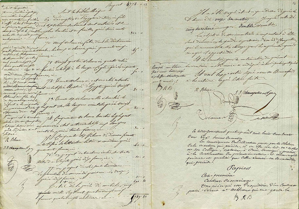 Inventaire après décès de Jean François Champollion, 9 août 1832. Archives nationales de France, MC/ET/CVI/807 [MC/RS//927]